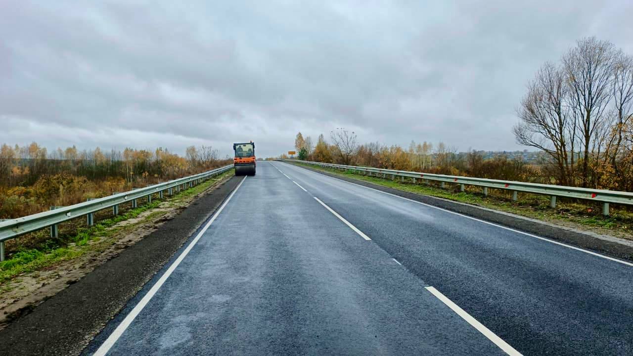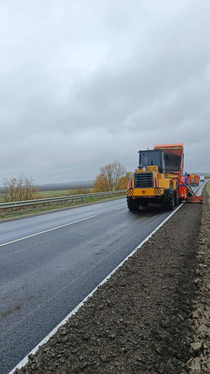 А на дороге Тула-Белев - выполнили укрепление обочин асфальтогранулятом.