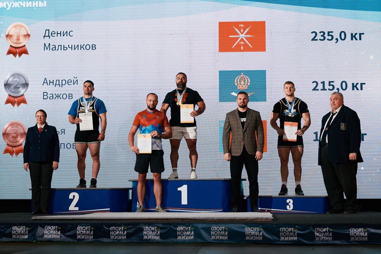 1 место – Денис Мальчиков. Он стал абсолютным победителем среди мужчин в весовой категории до 105 кг с результатом в 235 кг;
