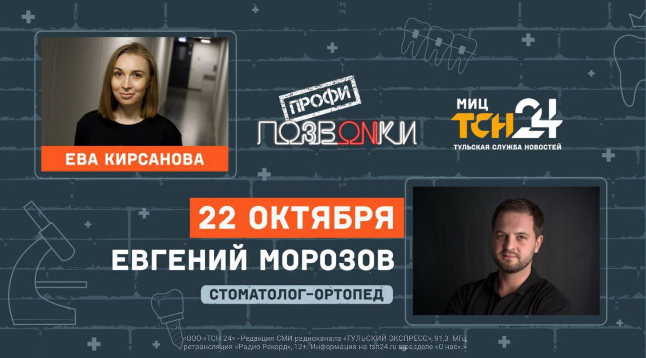 В гостях у нас будет Евгений Морозв — стоматолог-ортопед. Стартуем в 16:20.