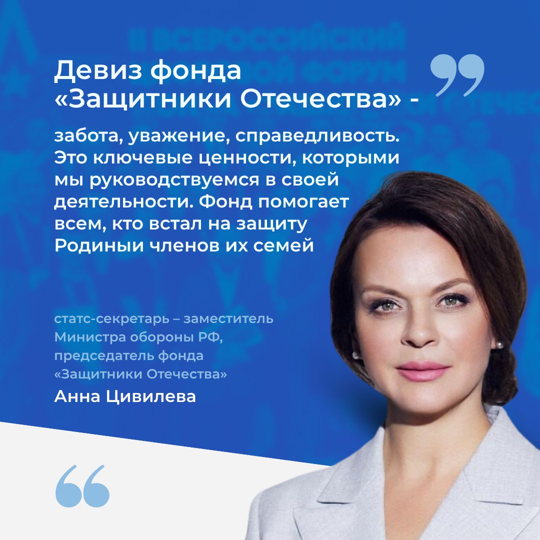 На заседании Наблюдательного совета фонда председатель Анна Цивилева предложила расширить категорию получателей поддержки — включить участников СВО с тяжёлыми ранениями, которые продолжают службу.