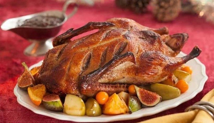 - Варинт 1: Утка с яблоками и черносливом, запеченная целиком