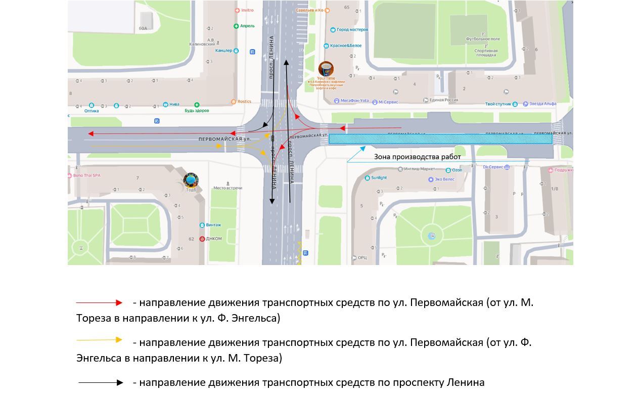 С 9.00 24 октября до 21.00 26 октября на части улицы Первомайской в районе домов № 1, 3 и 5 временно ограничат движение транспорта