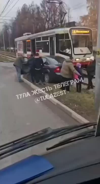 Иномарка «залетела» под трамвай на проспекте Ленина в Туле