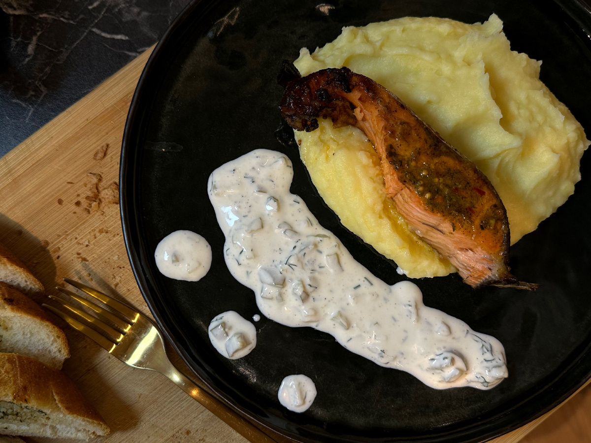 Сегодня в меню — золотистая запеченная семга, которая готовится в аэрогриле и подается с нежным картофельным пюре и легким соусом тартар. Этот рецепт является не только простым, но и очень вкусным, благодаря специям и маринаду, которые придают рыбе изысканный вкус.