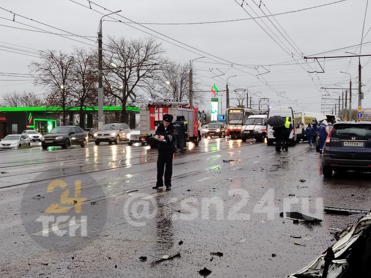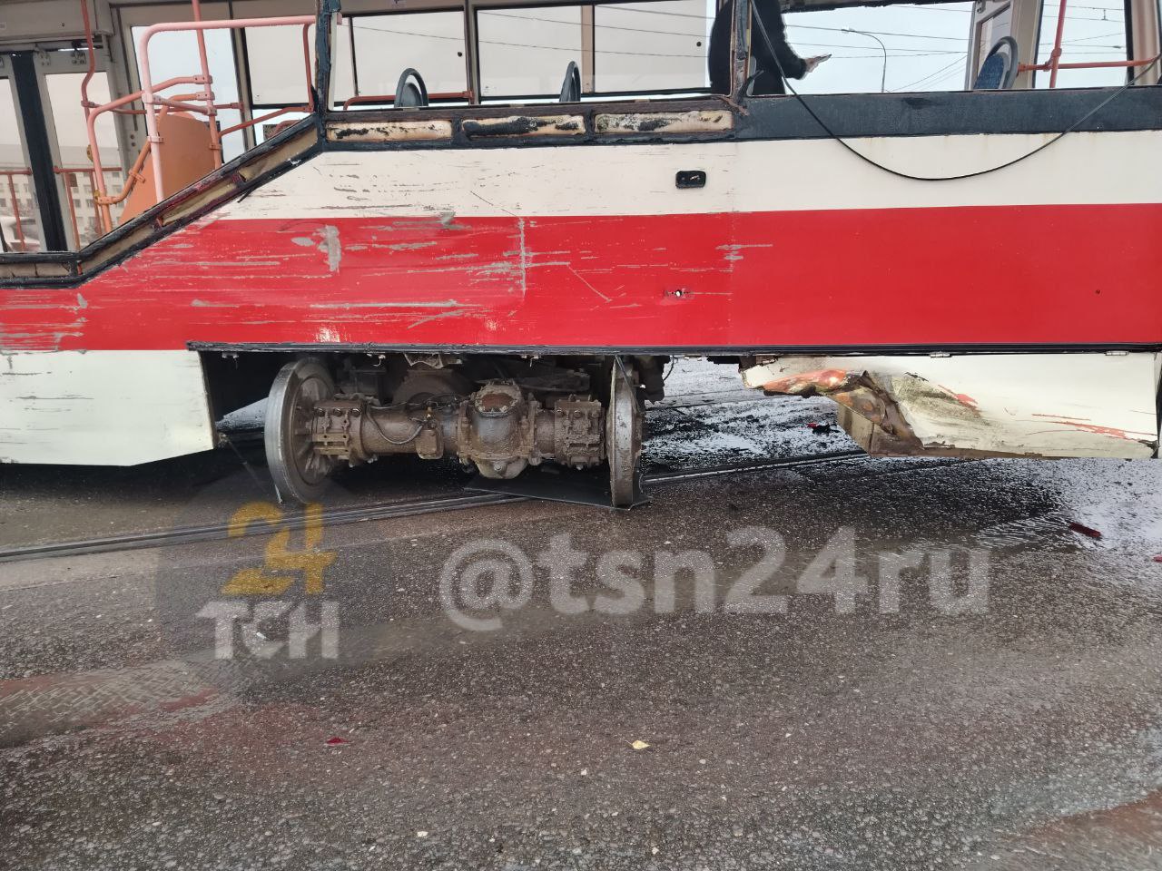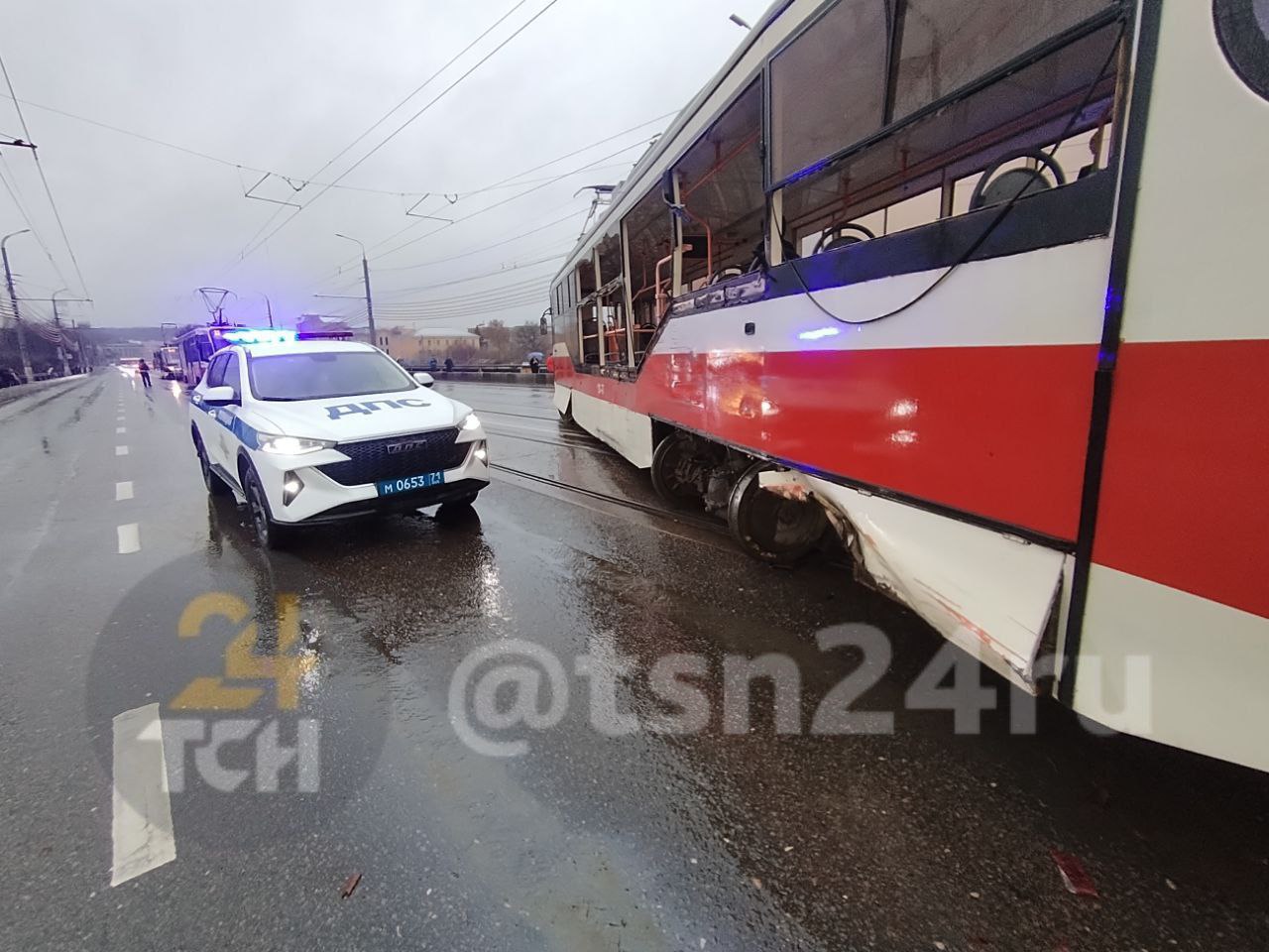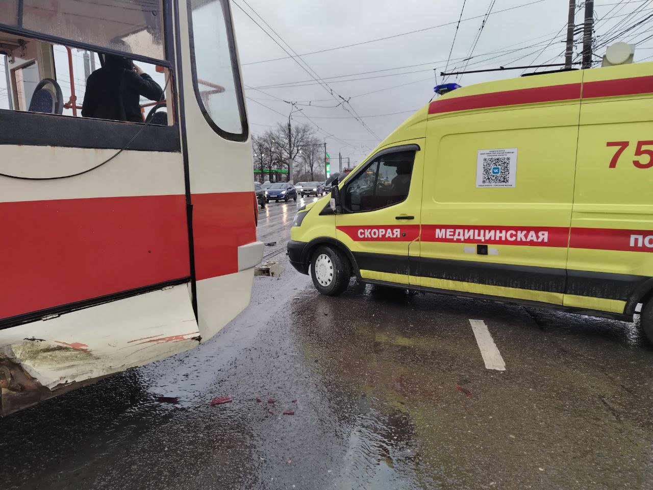 По предварительным данным, трамвай занесло, после чего в него врезались две маршрутки.