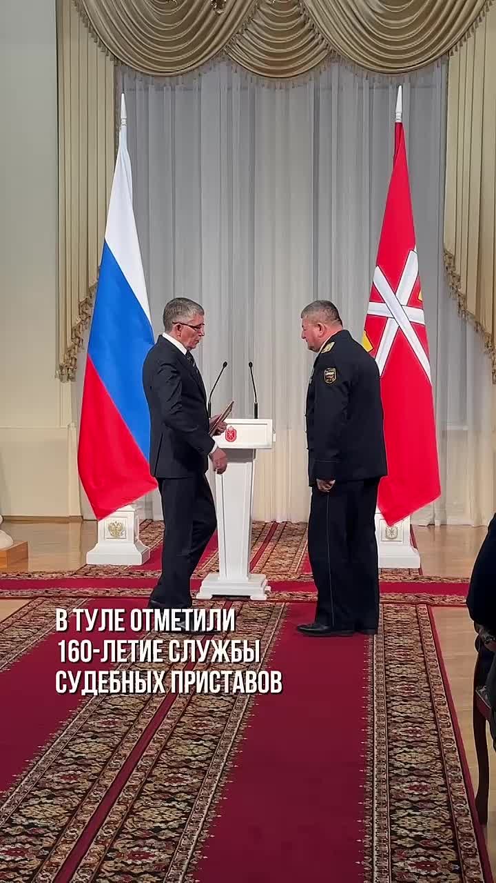 Также собравшихся поздравил руководитель Управления Федеральной службы судебных приставов по Тульской области — главный судебный пристав Тульской области Эдуард Кононов. Он вручил Губернатору Дмитрию Миляеву памятную медаль «160 лет образования института судебных приставов».