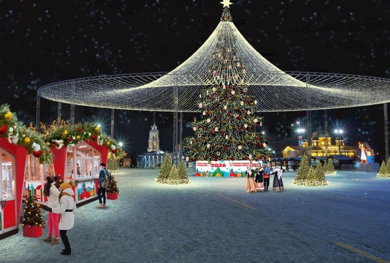 Праздник дополнят Губернский каток, световой фонтан, артобъект «Самовар» и ярмарочные домики; по городу появится свыше 1 600 иллюминаций, включая 7 дополнительных елей.