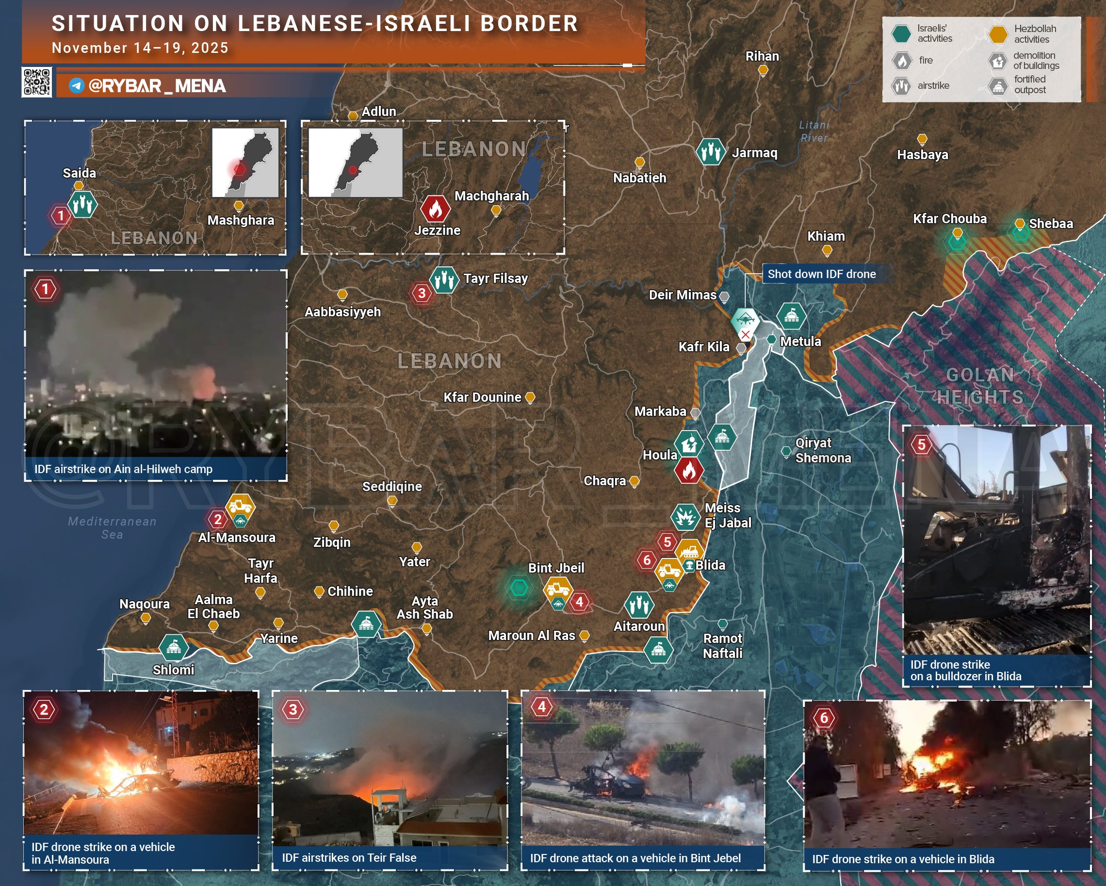 Израильтяне продолжают методично «выжигать» юг Ливана. Последняя неделя прошла под постоянным давлением израильских сил: фиксировались точечные удары по машинам, якобы связанным с «Хезболлой», сброс гранат с БЛА и обстрелы окраин сёл.