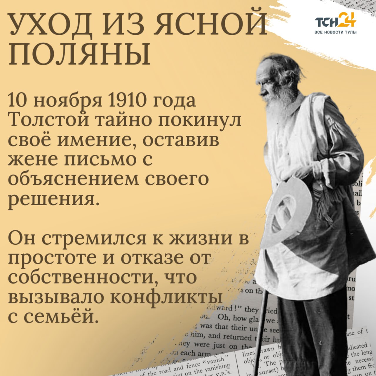 В карточках рассказываем о последних днях Толстого и о том, почему и куда он хотел бежать.
