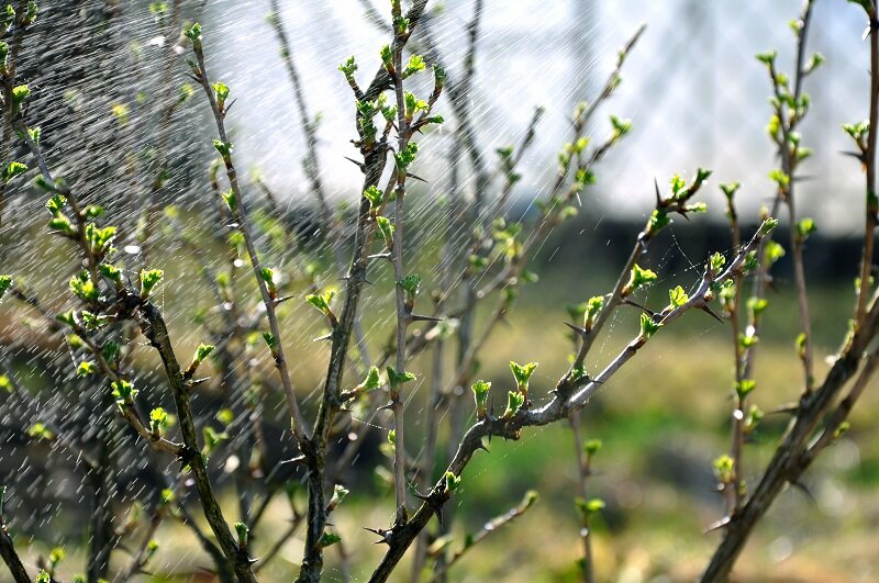 Весной, когда снег уже сойдет, полезно полить кусты горячей водой с добавлением марганцовки, что способно предотвратить многие грибковые заболевания. С этой целью рекомендуется использование настоев, например, на основе пижмы, которая также отлично справляется с профилактикой.