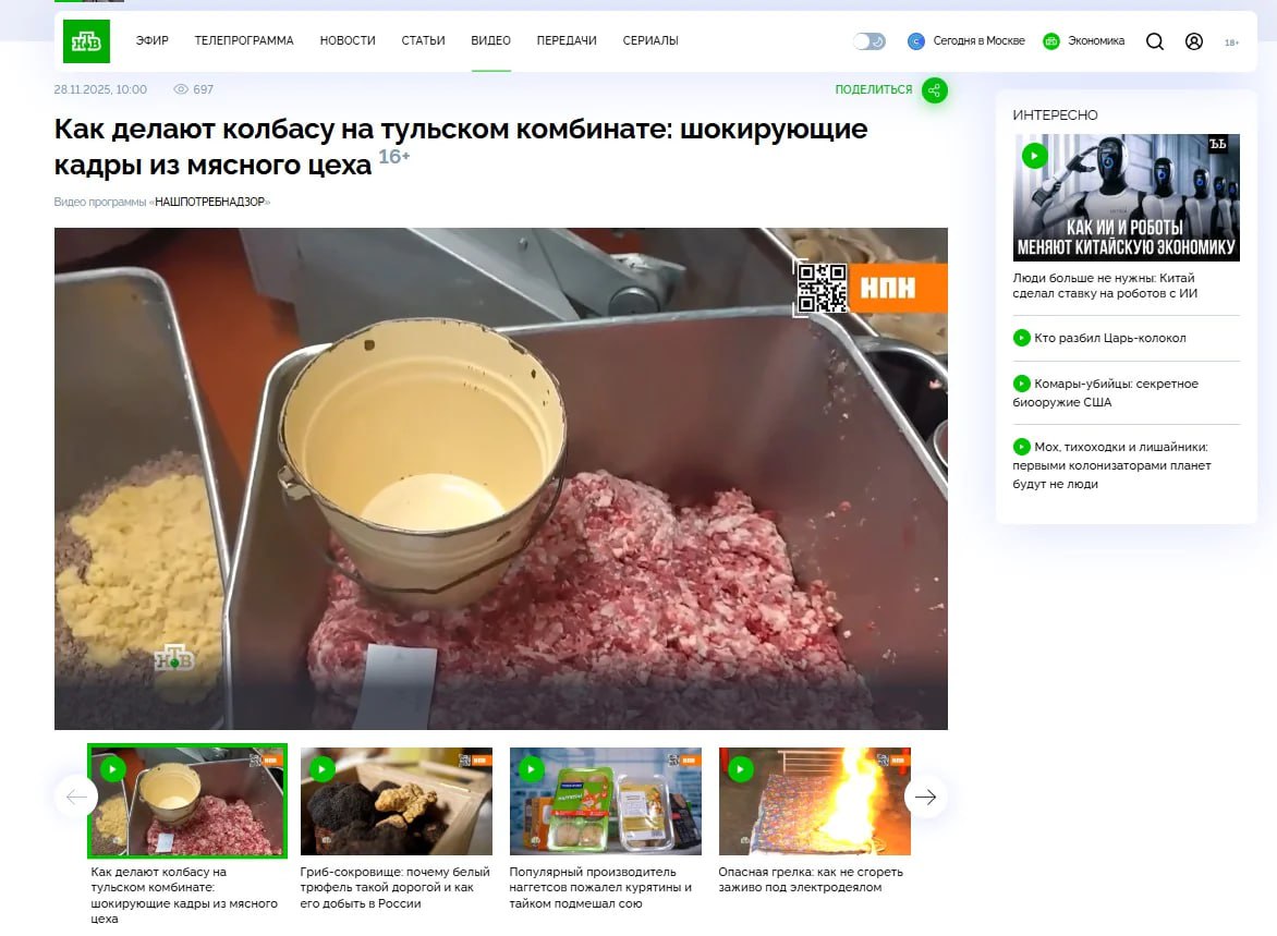 Мясокомбинат под Тулой стал героем выпуска «НашПотребНадзор» (16+) на НТВ.