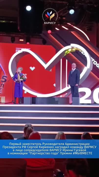 Первый заместитель Руководителя Администрации Президента РФ Сергей Кириенко наградил ВАРМСУ в лице сопредседателя Ассоциации Ирины Гусевой.