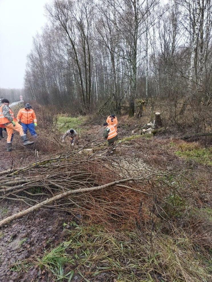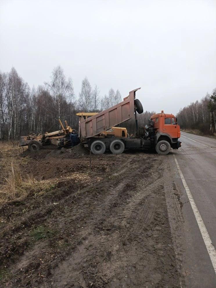 Суворовский участок Щекинского ГУ ТО «Тулаавтодор» выполняет работы по вырубке кустарника и обустройству бермы на автомобильной дороге Голодкосе-Суворов-Одоев.