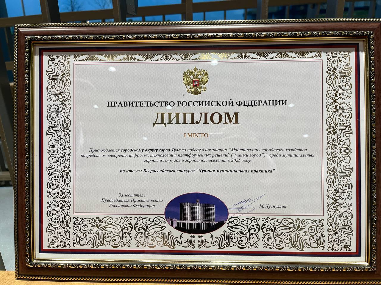 Тула получила награду Всероссийского конкурса «Лучшая муниципальная практика» 2025 года