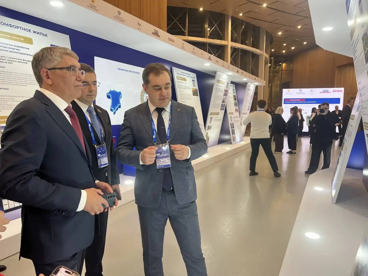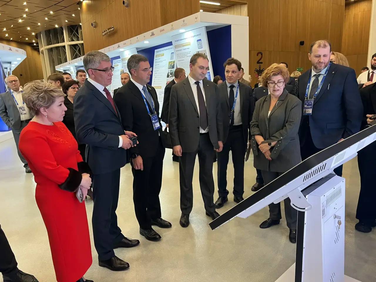 Губернатор Тульской области Дмитрий Миляев, Глава города Тулы Алексей Эрк, сопредседатель ВАРМСУ Ирина Гусева, сопредседатель ВАРМСУ, сенатор Андрей Шевченко, члены тульской делегации осмотрели выставку.