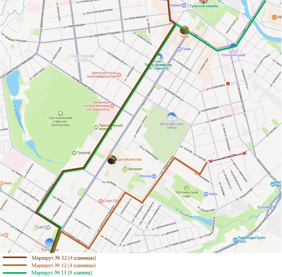 В Туле 13–14 декабря изменятся трамвайные маршруты №12 и №13