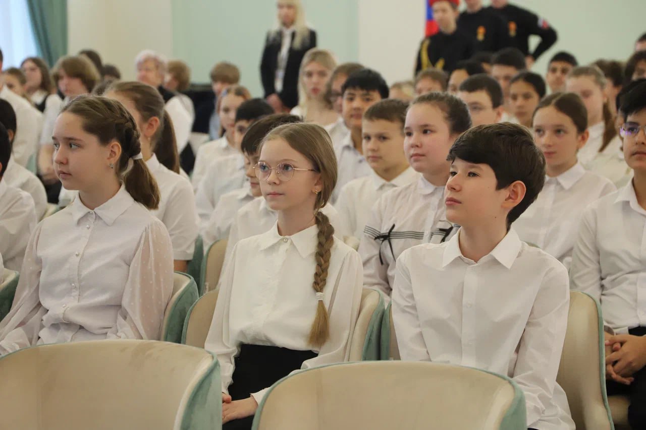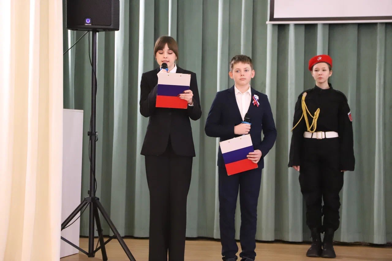 Стартовала патриотическая акция в гимназии №11, где школьников приветствовали директор Олеся Филина, депутаты гордумы и сенатор РФ, секретарь регионального отделения партии «Единая Россия», координатор проекта «Историческая память» Николай Воробьев.