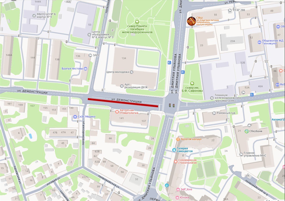 23 декабря на участке от ул. Дмитрия Ульянова до ул. Первомайской по ул. Демонстрации запретят остановку и стоянку всех видов транспорта