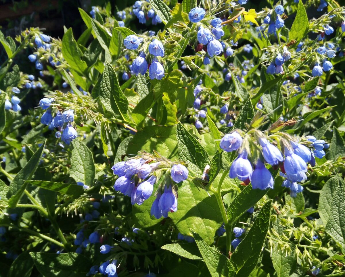 Окопник, хотя и менее известен, чем крапива, также является растением с богатым содержанием питательных веществ. Это крупный кустарник, высота которого может доходить до 80 см, с крупными шершавыми листьями и красивыми голубыми цветами. Корни окопника уходят глубоко в землю, однако стоит обратить внимание на его способность быстро расползаться.