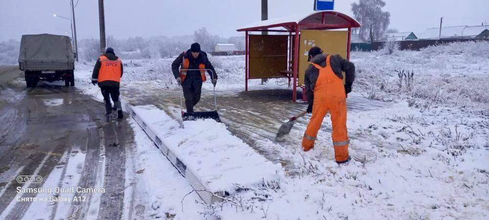 Сотрудники Богородицкого участка Узловского ГУ ТО «Тулаавтодор» провели комплекс работ на проезжей части дороги Богородицк-Товарковский-Куркино и возле автобусных остановок.