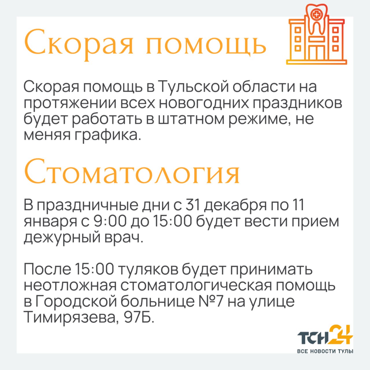 Опубликован график работы медучреждений Тульской области в новогодние праздники