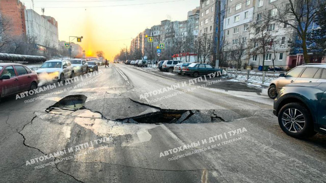 Асфальт провалился из-за коммунальной аварии на улице Хворстухина в Туле