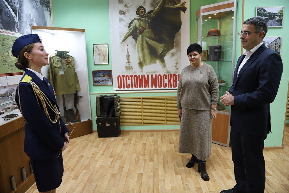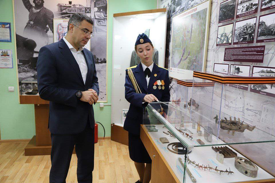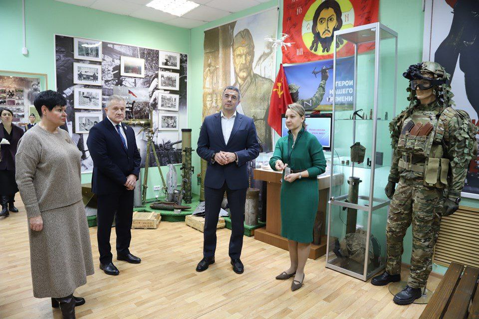 Мэр вместе с начальником управления образования Татьяной Золотовой и директором центра Андреем Степановым осмотрели комнату хранения оружия, посетили музей поста № 1. Первый зал посвящен обороне Тулы, второй – проведению спецоперации.