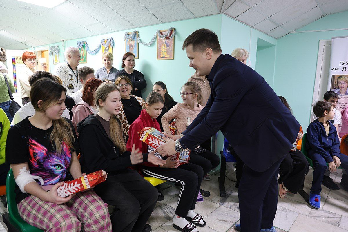 В преддверии Нового года, в рамках ежегодной акции «Марафон добра», Глава города Тулы Алексей Эрк совместно с заместителем председателя Тульской городской Думы Борисом Воловатовым, депутатами гордумы Павлом Астафьевым, Александром Маринковым посетили детское отделение Тульской городской клинической больницы скорой медицинской помощи им. Д.Я. Ваныкина. Также в мероприятии приняла участие главный врач медучреждения, депутат гордумы Ирина Рублевская.