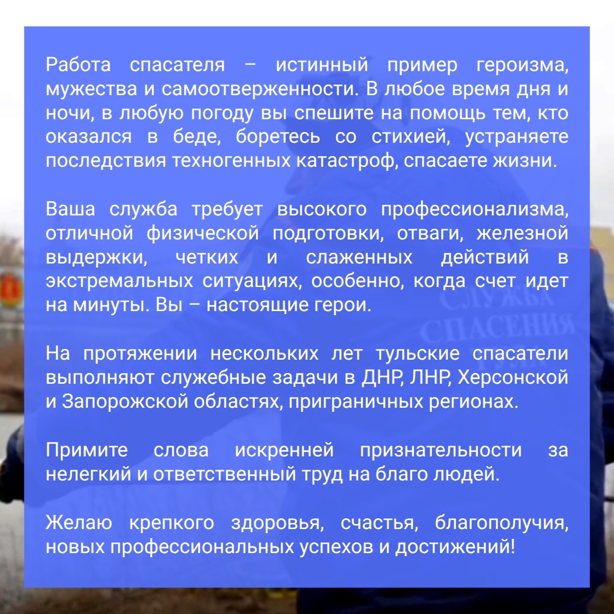 - Сегодня День спасателя. Губернатор поздравил и поблагодарил их за верность своему призванию, стойкость и самоотверженность// Вести-Тула