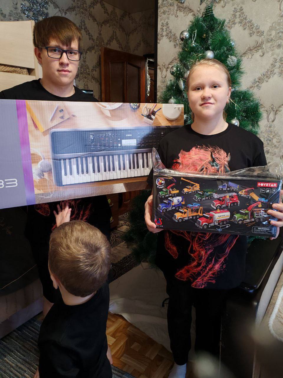 16 летний Данила получил синтезатор, а его младший братик Кирилл – набор игрушек. Поздравляем ребят с наступающими праздниками, желаем здоровья и успехов!