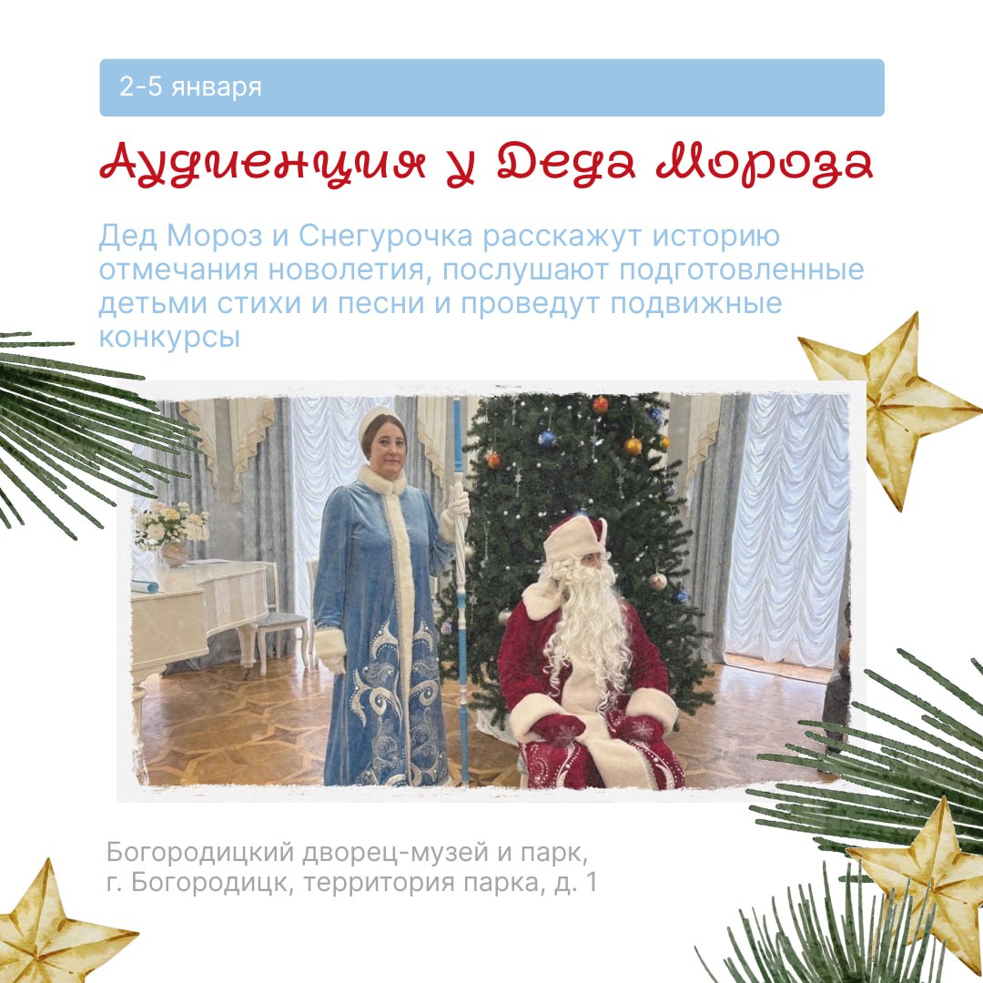 Дни на стыке двух годов будут насыщенными. Мы узнаем, что такое новолетие, попробуем блюда исторической кухни на Куликовом поле, посмотрим на хозяина зимнего леса и примем участие в хороводе.