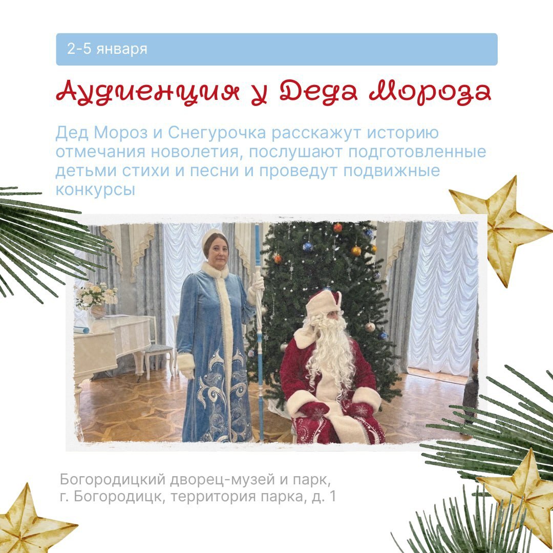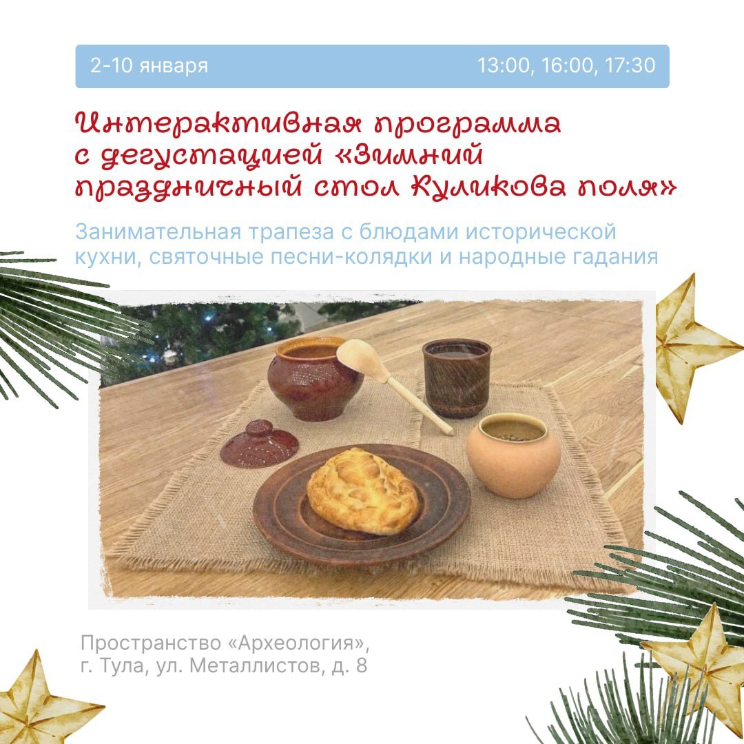 Дни на стыке двух годов будут насыщенными. Мы узнаем, что такое новолетие, попробуем блюда исторической кухни на Куликовом поле, посмотрим на хозяина зимнего леса и примем участие в хороводе.