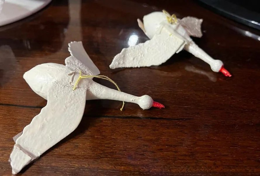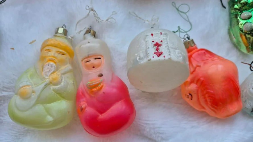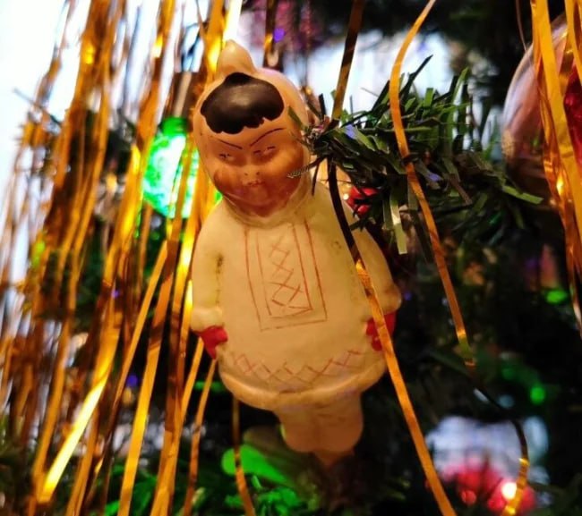 На этих фотографиях - елочные игрушки из детства наших сотрудников и читателей. Казахская юрта, белые журавли, Дед Мороз из ваты и папье-маше, семидесятилетний эскимос - все это украшает их елки не один десяток лет.