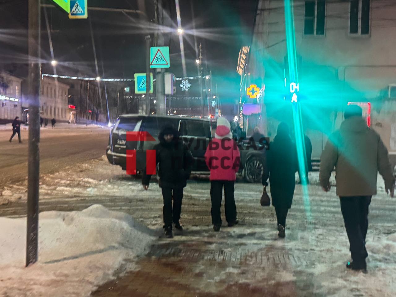 Они же рассказали: похоже, удар был такой силы, что Cadillac отбросило на пешеходный переход.