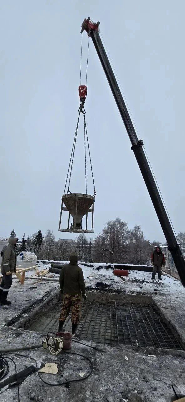 Во вторник, 6 января, специалисты демонтировали поврежденные участки перекрытия, установили арматурные каркасы и залили бетон. После завершения этих этапов планируется приступить к ремонту внутренних помещений квартиры.
