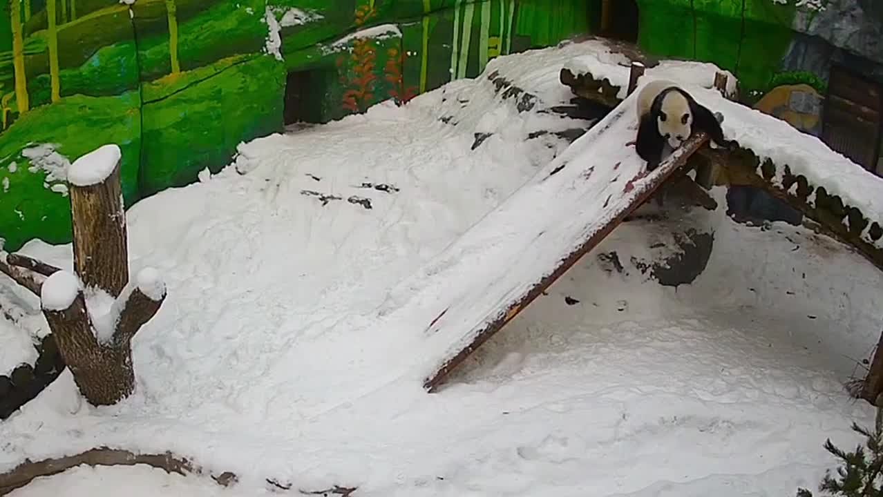 Кто точно чувствует себя прекрасно в такой снегопад, так это панда Катюша из Московского зоопарка