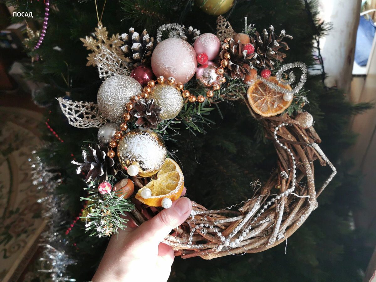С помощью красок и блесток были созданы яркие элементы, которые в итоге использовались на главном новогоднем украшении. Когда Рождество пришло, венок выглядел особенно красиво благодаря всем проделанным усилиям.
