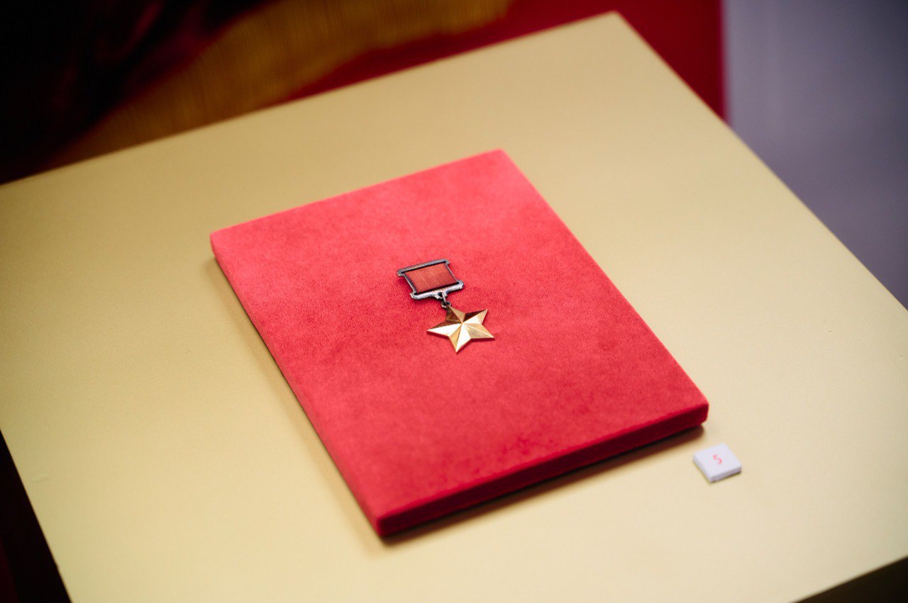 Центральное место занимает медаль «Золотая Звезда» города-героя Тулы, которую лично вручил Генеральный секретарь ЦК КПСС Леонид Брежнев.
