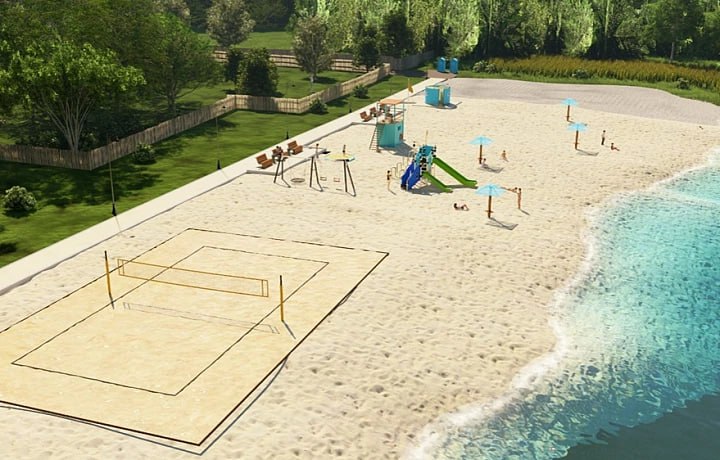 В зоне отдыха будут установлены раздевалки и лавочки, а для детей оборудуют игровой комплекс. Кроме того, на пляже появится волейбольная площадка.