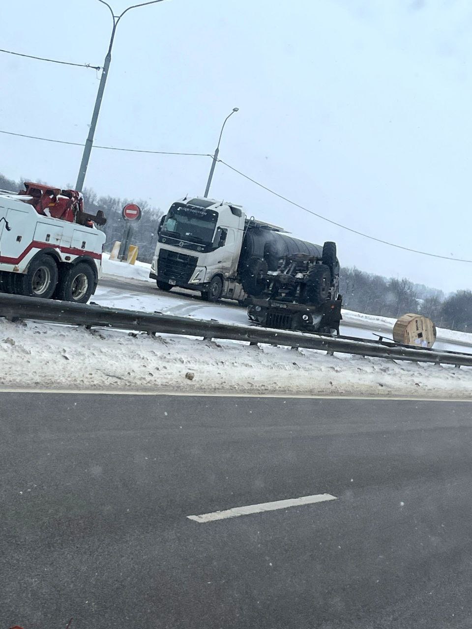 Военный грузовик перевернулся на трассе М-4 «Дон» в Тульской области