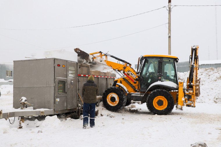 По сравнению с прошлым годом зима в этом году выдалась снежная. За первую декаду января выпало уже 140 % осадков от месячной нормы. Необходимо не просто убирать снег с улиц города, его нужно вывозить. Эти работы ведутся круглосуточно, в основном ночью, чтобы не мешать проезду транспорта.