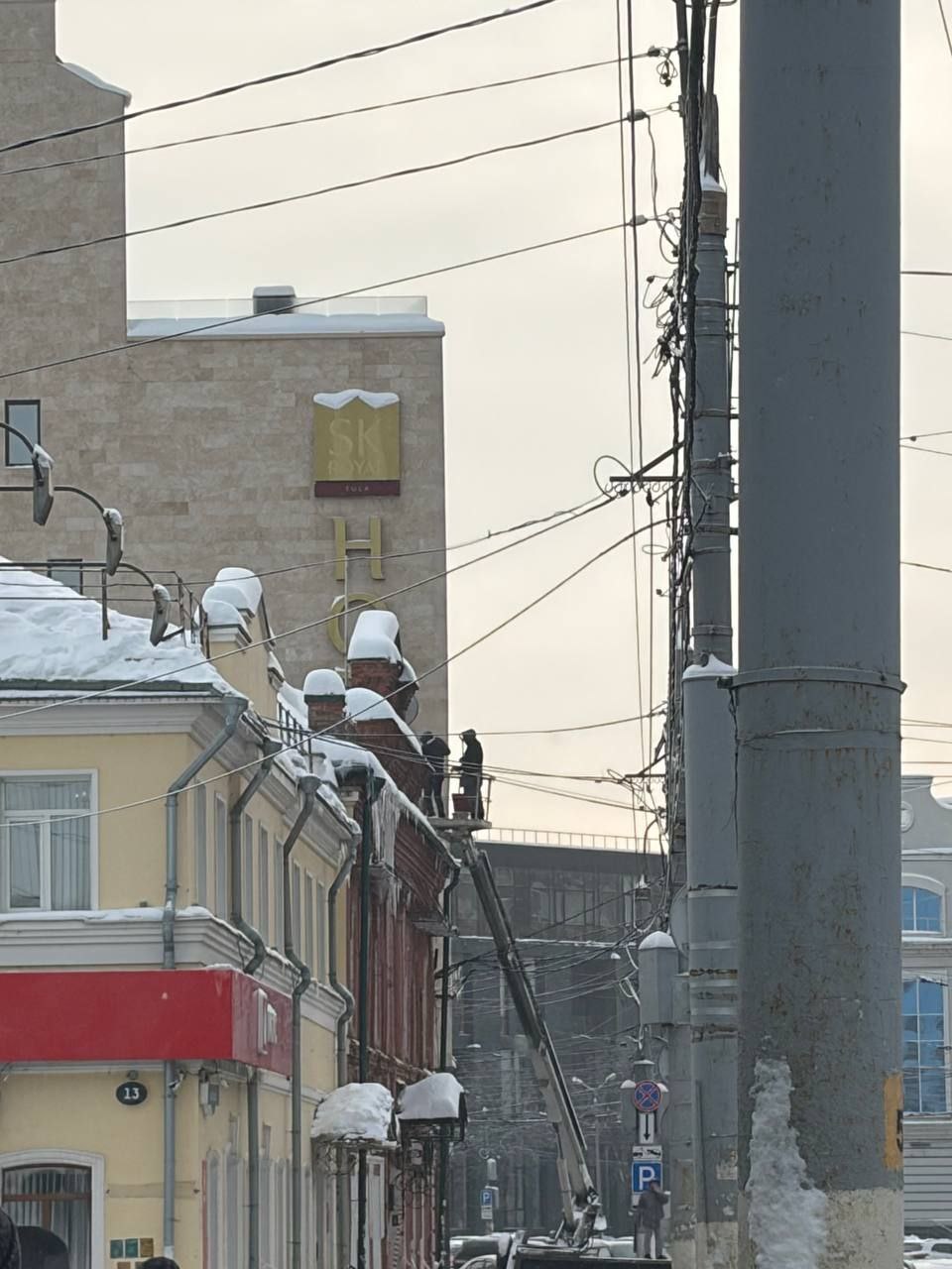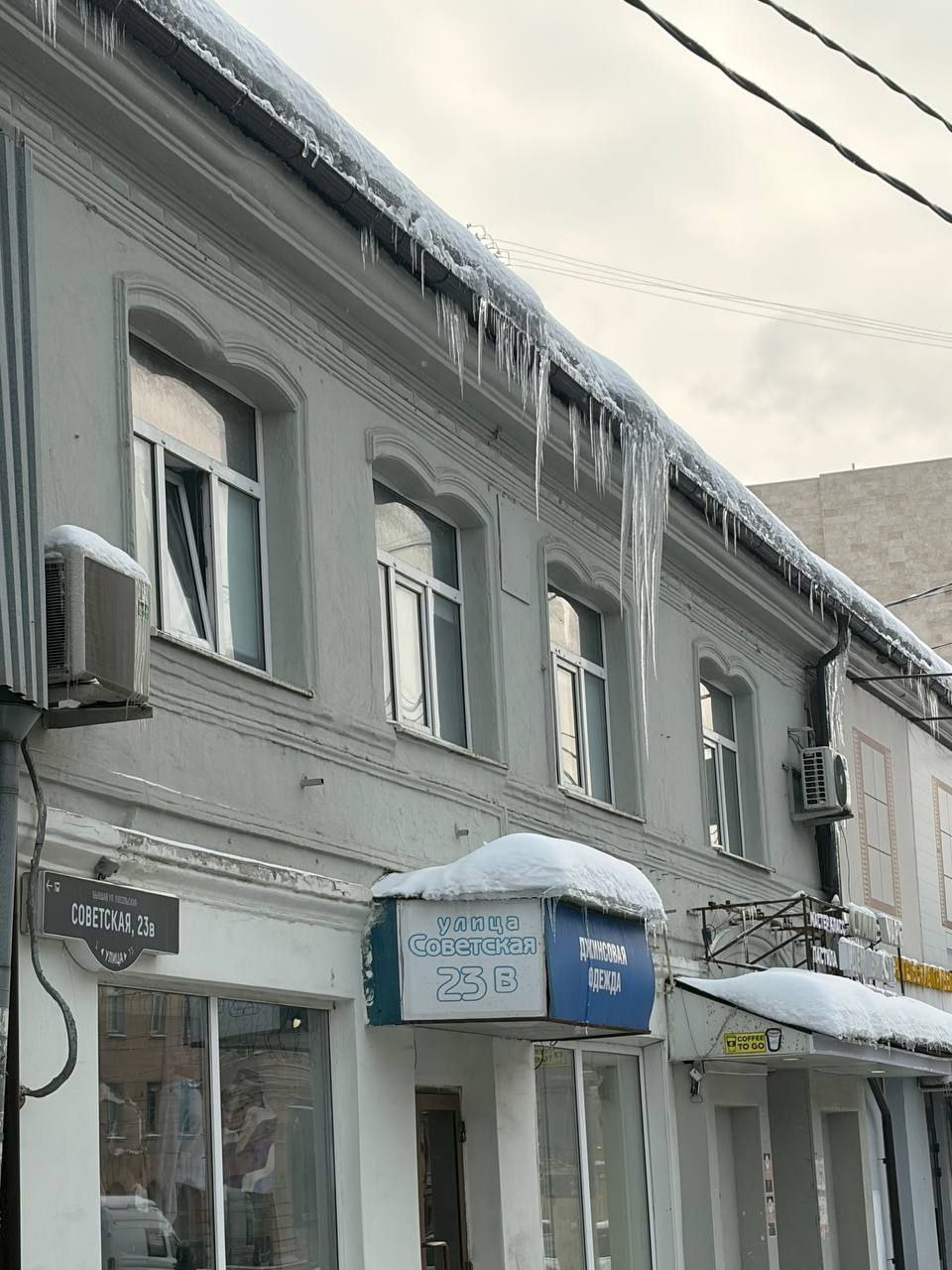 Огромным сосулькам - с этаж на Советской осталось пугать народ считанные минуты. Специалисты уже рядом