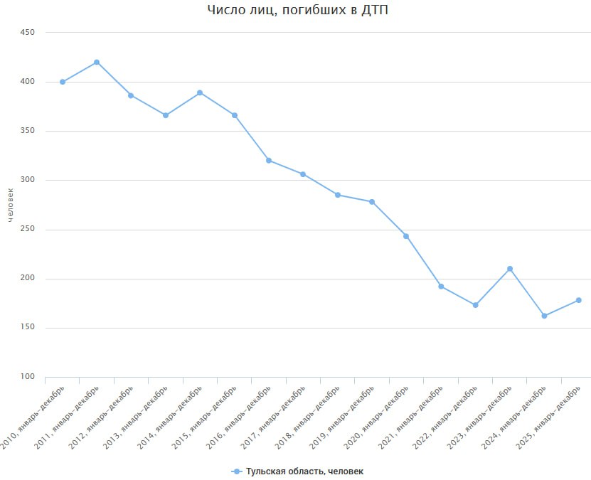 В 2025 году в Тульской области в авариях погибли 178 человек