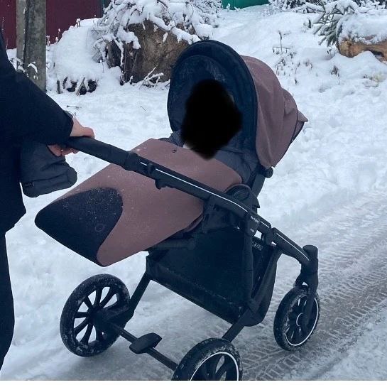 Совершенно уставшая мама оставила на парковке у парка на улице Рабочего полка рядом со входом, где площадка для собак прогулочный блок - коричневую коляску без колес с меховым конвертом внутри.