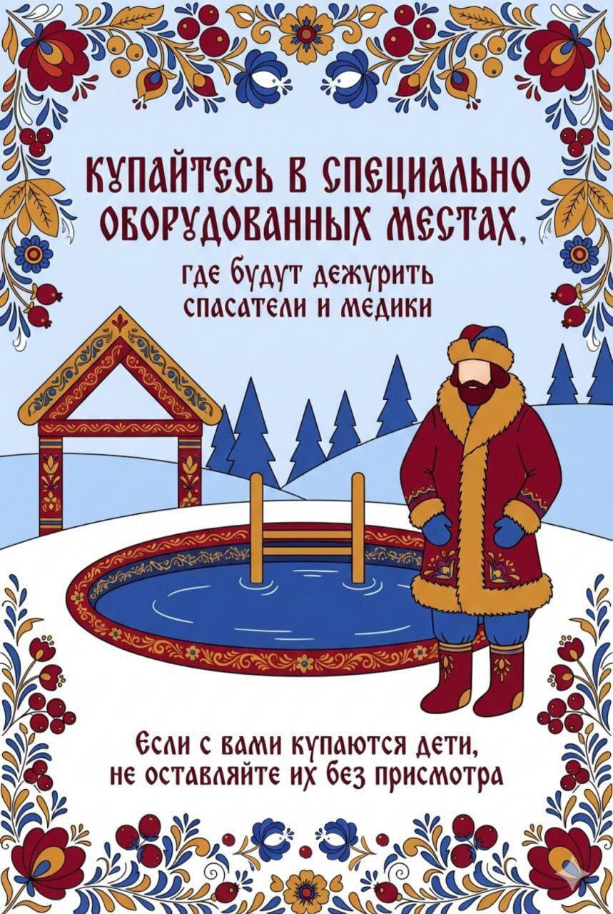 В дни купаний ожидаются сильные морозы. Перед купанием обязательно ознакомьтесь с правилами безопасности в наших карточках