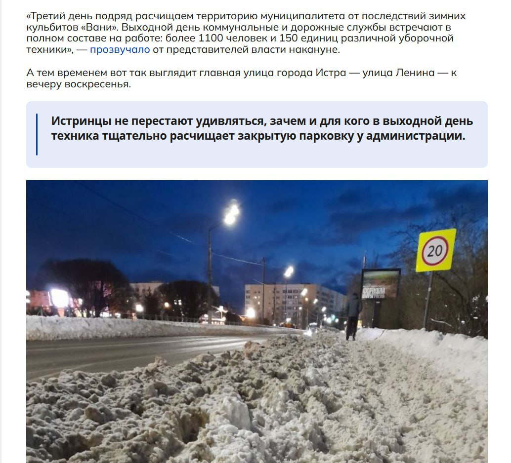 Каждый раз смешно, когда какая-нибудь администрация с опозданием, аккурат, когда снег растаял, бодро рапортует о ликвидации сугробов и гололёда, или читаешь отчёты с фотографиями территории, которую расчистили сами жители.