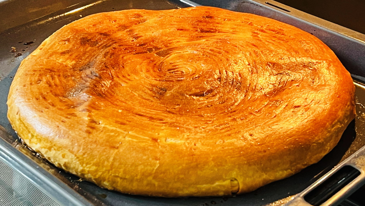 Переложите пирог на противень и смазайте его молоком или желтком. Установите духовку на 180 градусов и выпекайте около 20 минут, затем снизьте температуру до 160 градусов и продолжайте готовить еще 15-20 минут, пока пирог не станет золотистым. Подавайте этот чудо-пирог горячим, и он мгновенно покорит сердца ваших близких!