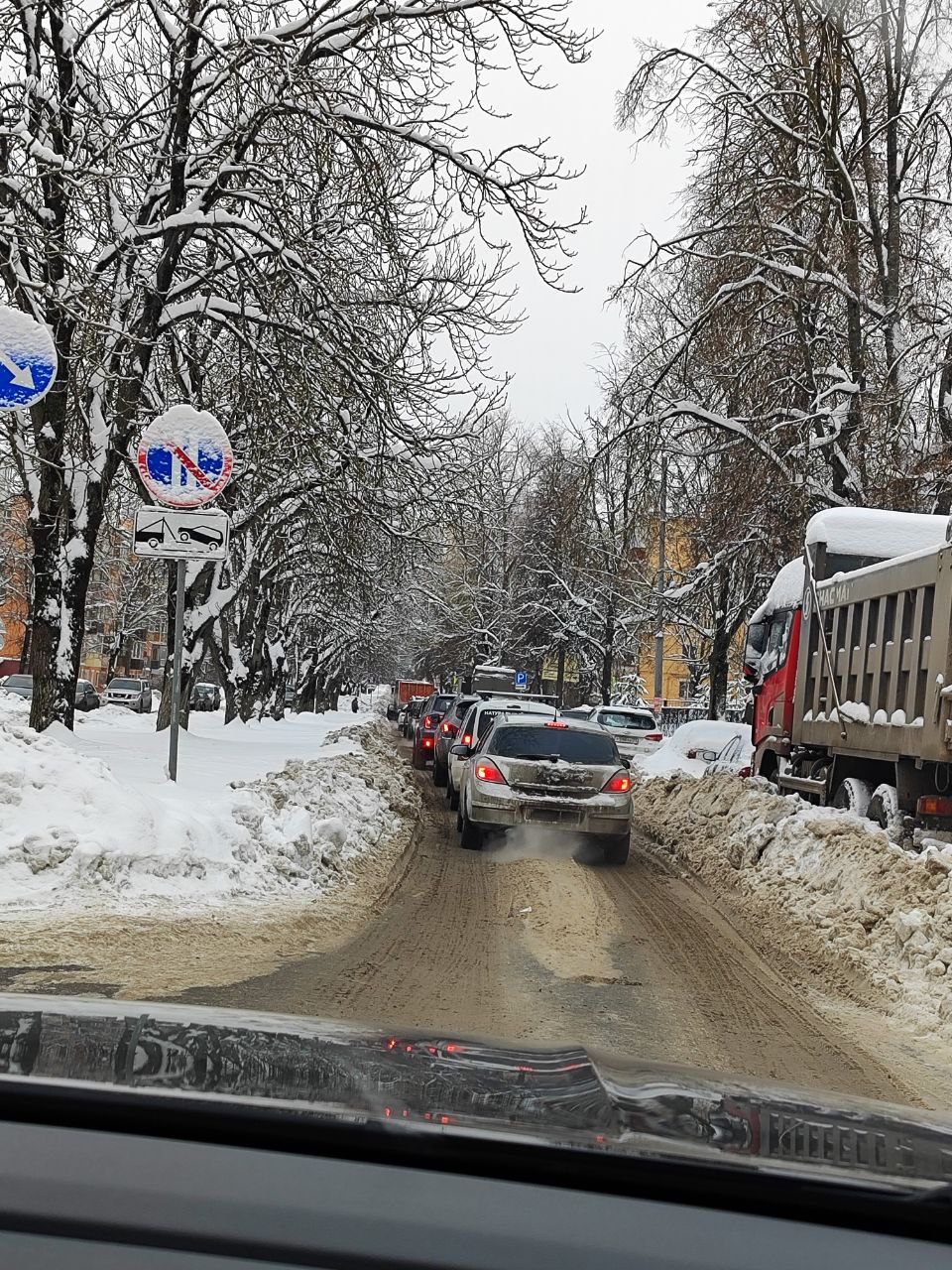 Засада на Н. Руднева. Машины оказались заперты из-за грузовика, который не двигается