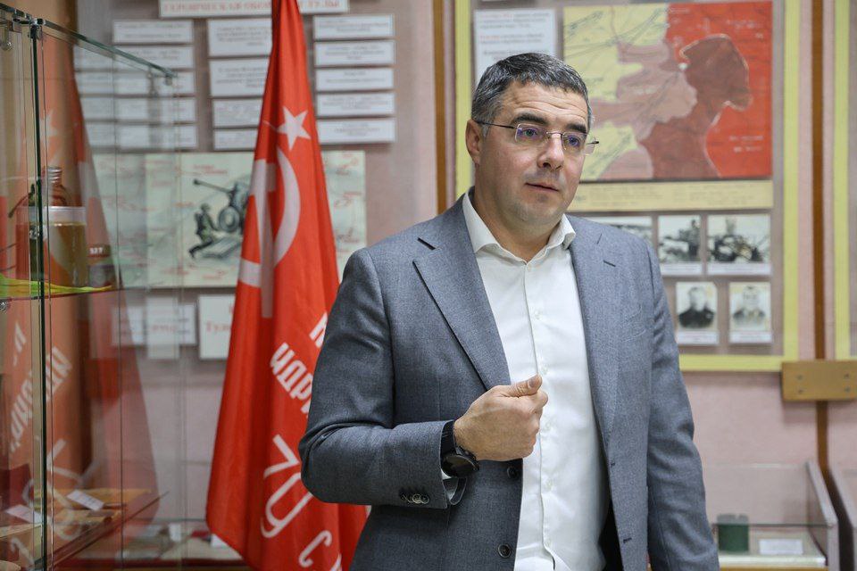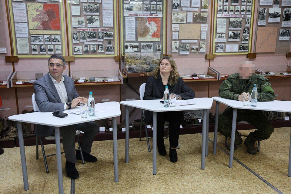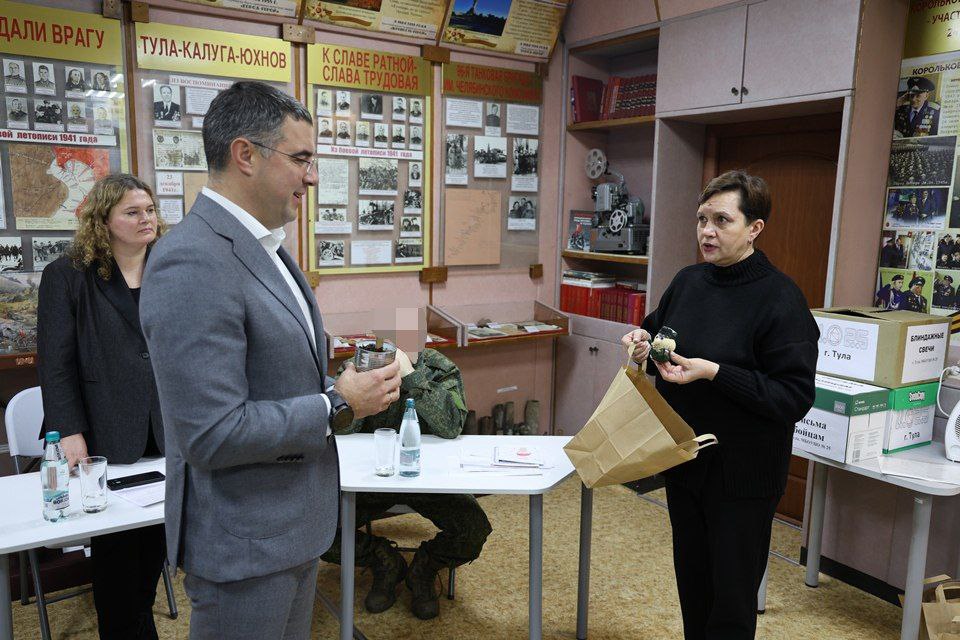 Глава города Тулы Алексей Эрк вместе с участником СВО и главной медсестрой военного клинического госпиталя встретился с учениками тульского центра образования № 25.