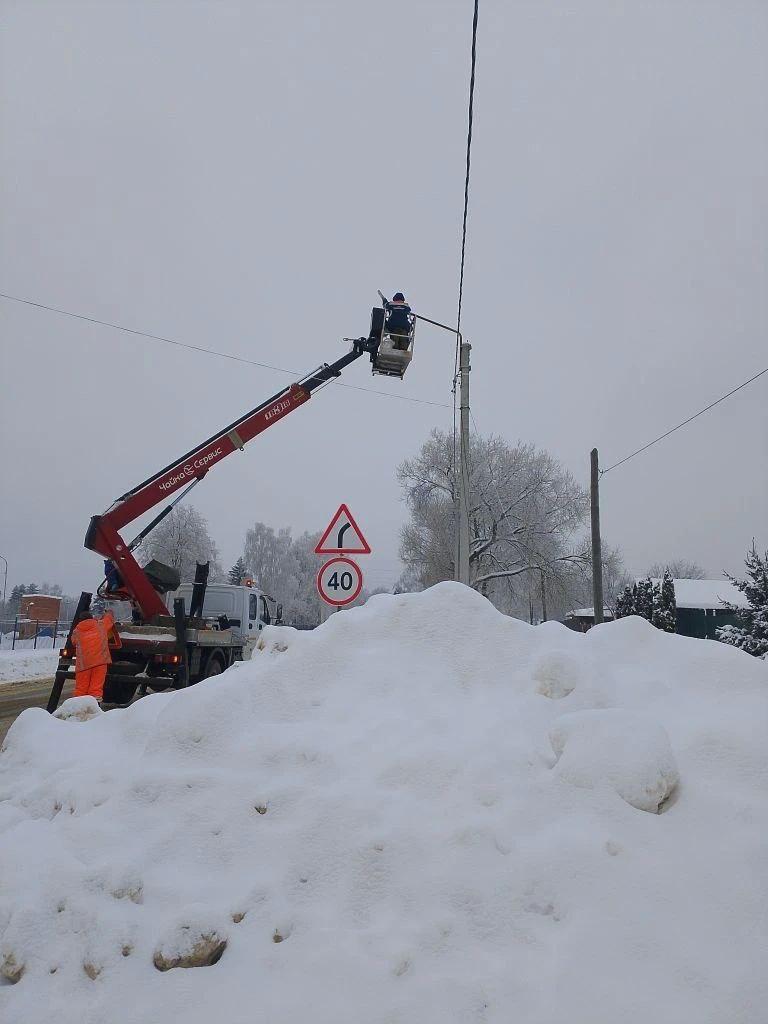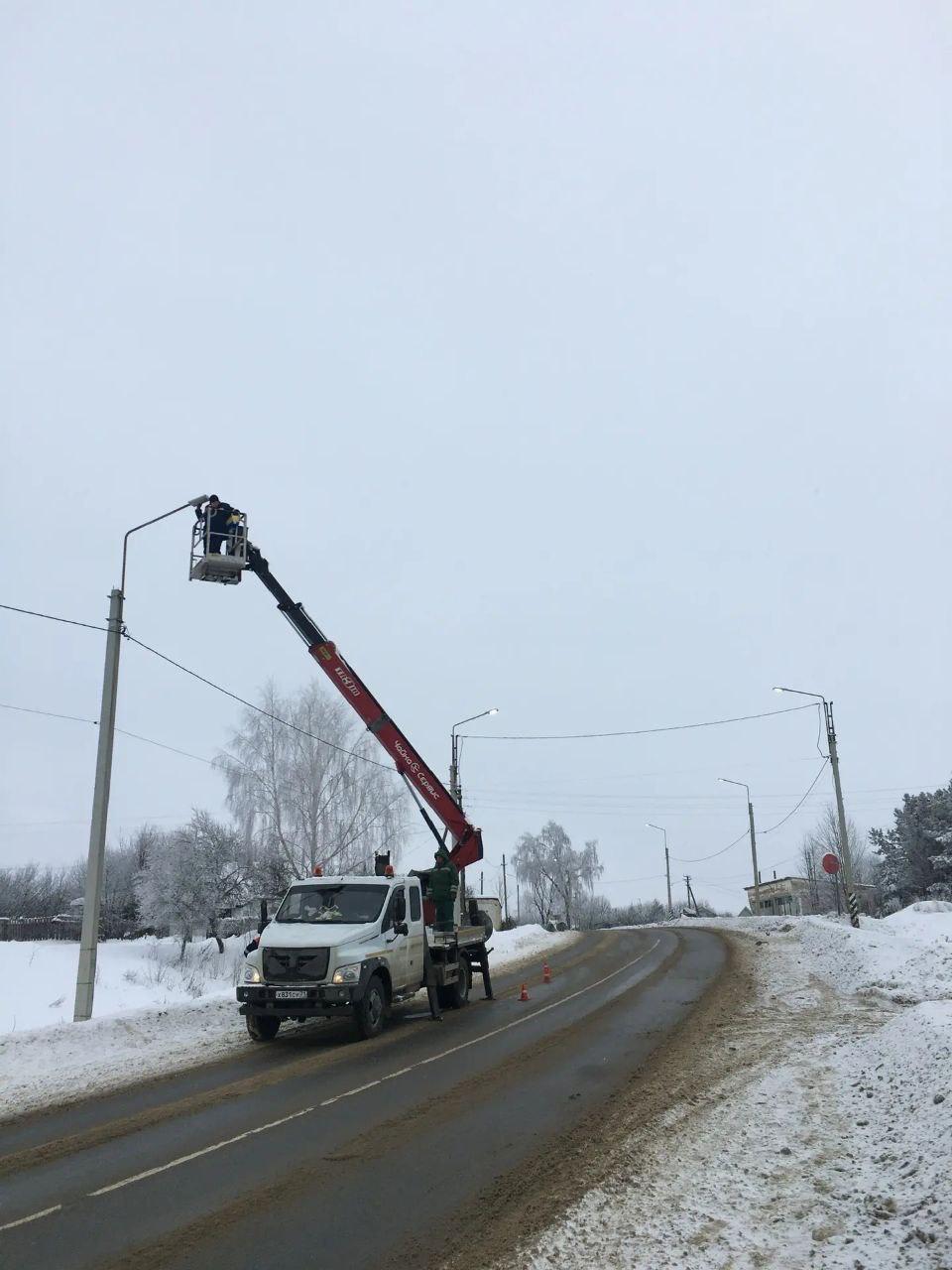 Содержание дорог. Сотрудники ГУ ТО «Тулавтодор» проводят работы по замене вышедших из строя светильников в п. Житово-Дедово Щекинского района и в п. Иваньково Ясногорского района